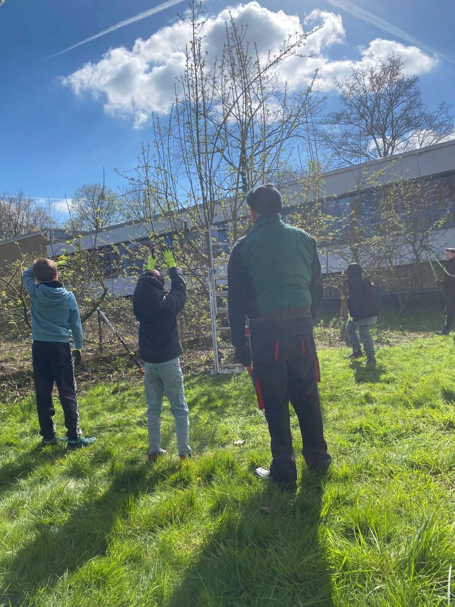 m letzten Tag vor den Osterferien fand auf dem Gelände des Förderzentrums West am Standort Dülken ein großer Schnitt an den Apfelbäumen statt. An der Aktion nahmen die Schülerinnen und Schüler der OGS teil und unterstützten die Arbeiten tatkräftig.