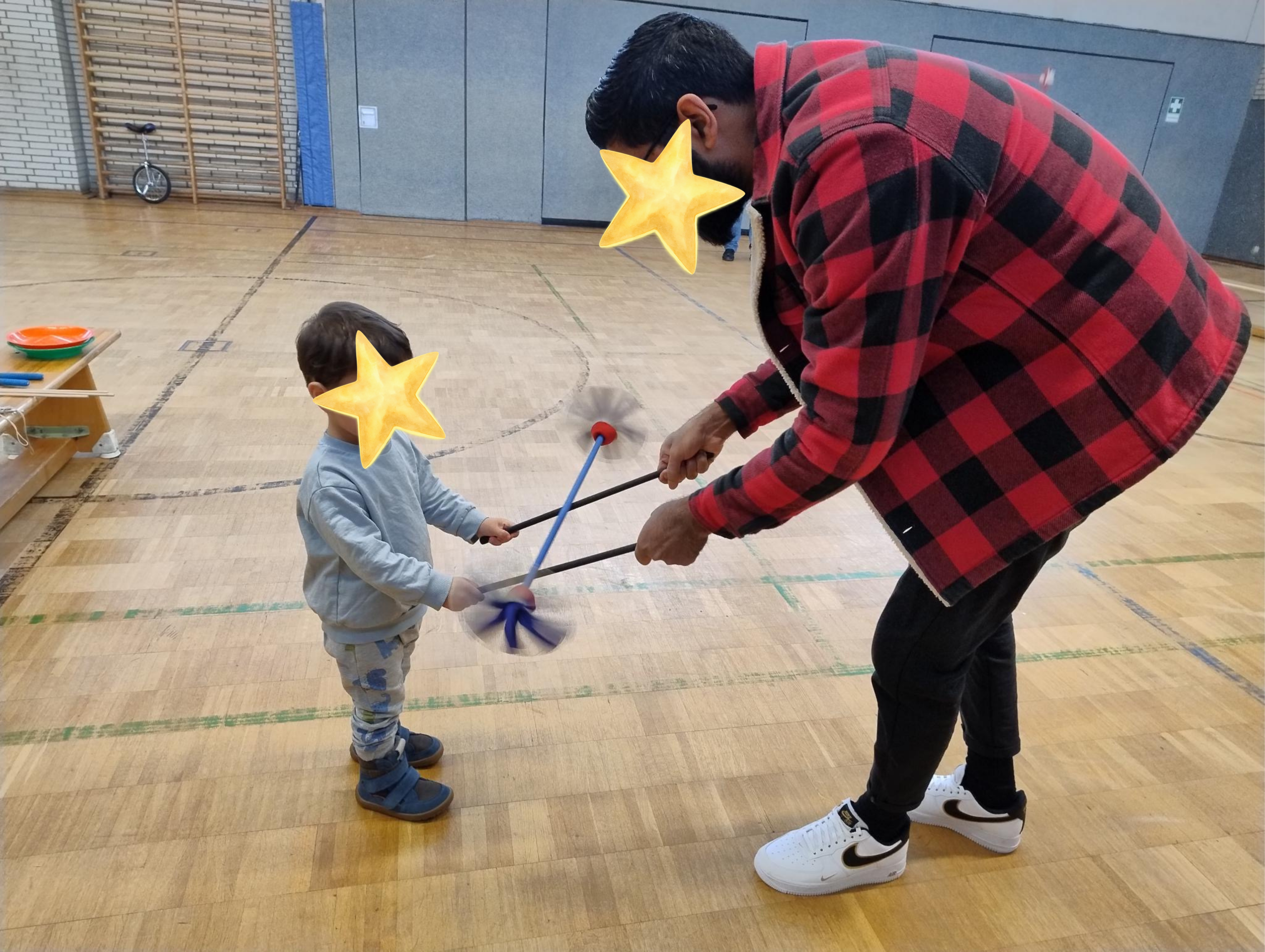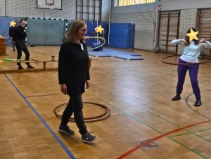 Auch der Mitmach-Zirkus in der Turnhalle begeisterte die Kinder, die dort mit Freude verschiedene kleine Zirkusübungen ausprobieren konnten.